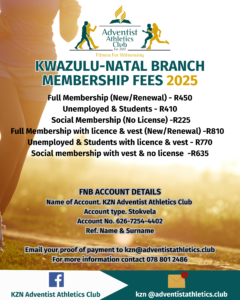 The Adventist Athletics Club KwaZulu Natal Branch was launched in 2016. It is a home to cyclists, runners, walkers and hikers of all levels. Our Club is devoted and concerned with maintaining good health. We offer a good mix of running, cycling, dedication, discipline, fun, and socialness. We support members in Peitermaritzburg, Durban, Empangeni, Newcastle, Ladysmith, Vryheid. Our time trials are Sundays Morning from 05:00 then during the week its individual trials posting our trials on Whatsapp group to keep us motivated individually and as a club.